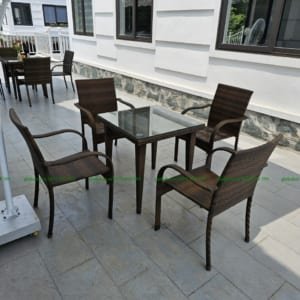 Giá bán:  Giá bán cho bộ sản phẩm Bàn Ghế Ăn Mây Nhựa TL401 gồm 4 ghế 1 bàn, bàn đã bao gồm kính, ghế không bao gồm đệm.