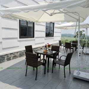 Chất liệu:  Khung sắt, sơn tĩnh điện ( chống gỉ), đan sợi mây nhựa nguyên chất dẹt 7mm VNXK kèm phụ gia kháng tia UV.