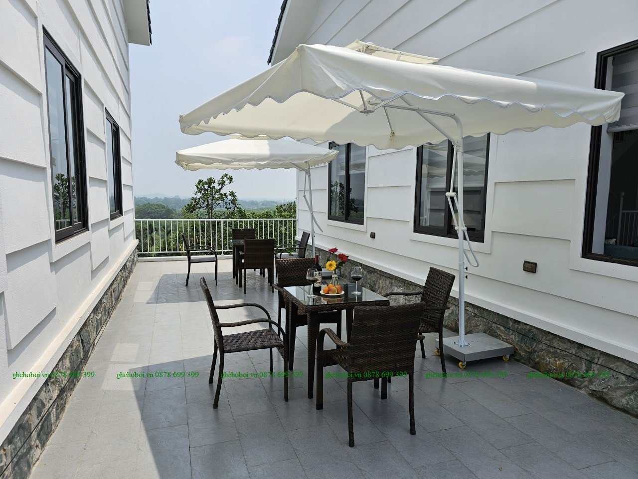 Chất liệu:  Khung sắt, sơn tĩnh điện ( chống gỉ), đan sợi mây nhựa nguyên chất dẹt 7mm VNXK kèm phụ gia kháng tia UV.