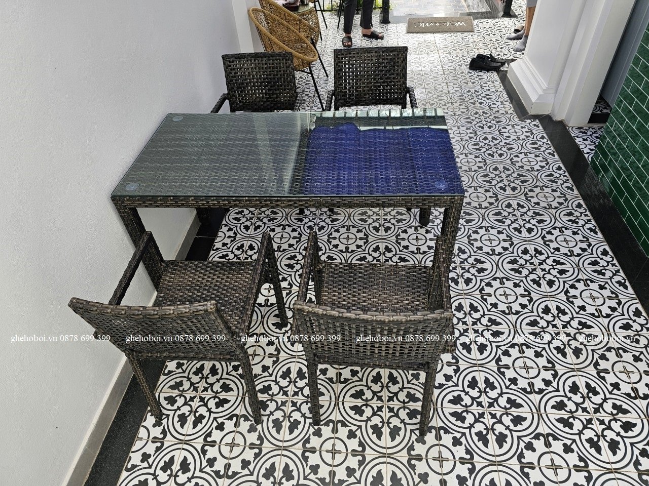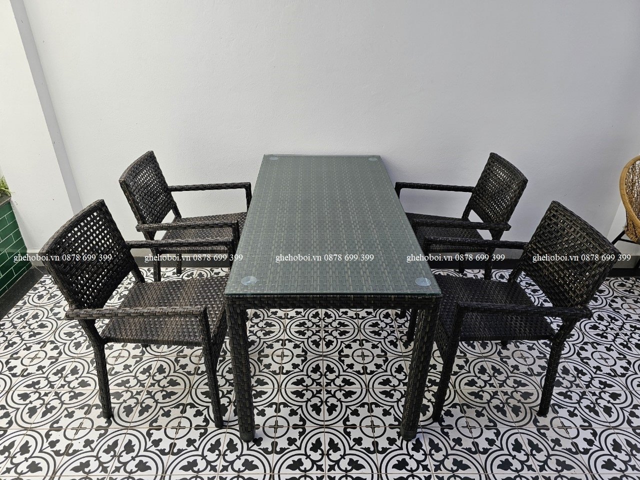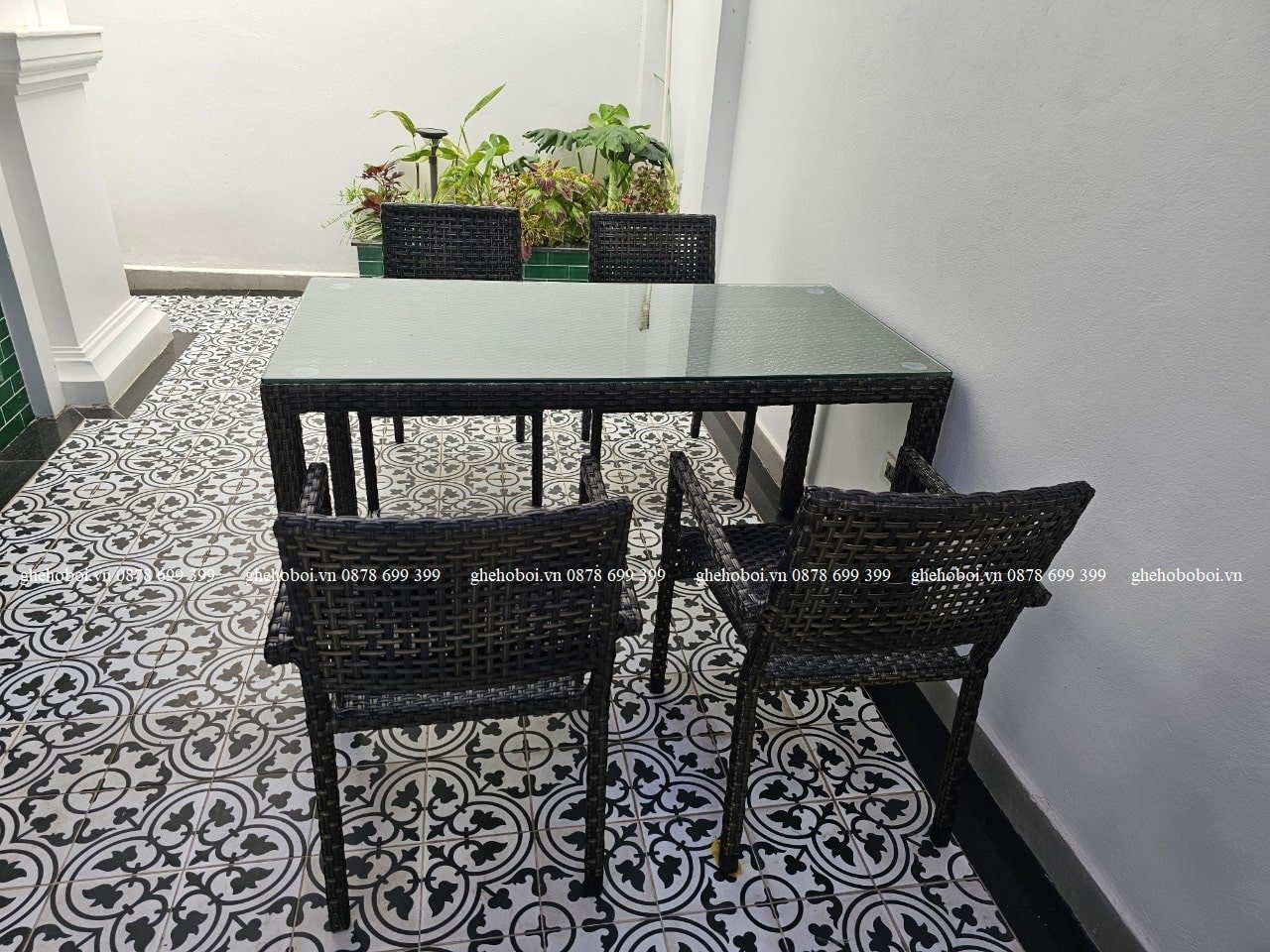 - Bàn Ghế Ăn Mây Nhựa Ngoài Trời