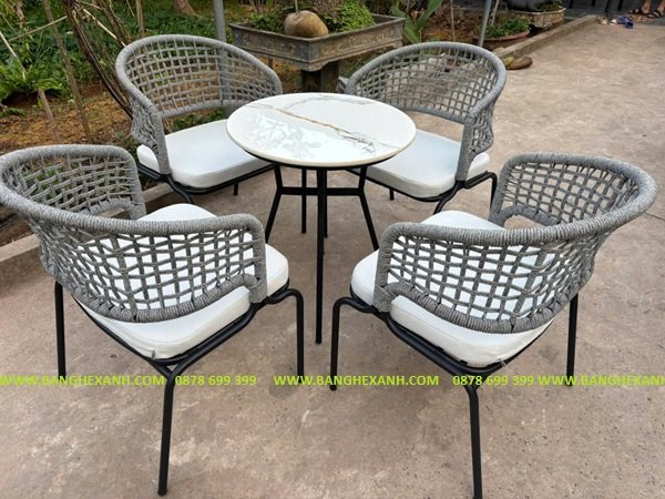 - Bàn Ghế Cafe Đan Dây Dù, Rope TL33D8 là mẫu thiết cực kỳ sáng tạo đòi hỏi tay nghề người thợ ở mức xuất sắc, kiểu đan thưa hàng rào vô cùng tinh tế. Sử dụng trong nhà & ngoài trời.