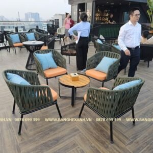 Giá bán: Giá bán cho bộ sản phẩm Bàn Ghế Dây Dù Ngoài Trời TL255  gồm 4 ghế 1 bàn. Ghế đã bao gồm đệm mút cao cấp D45 dày 7cm, vải cao cấp ngoài trời. Bàn đã bao gồm mặt đái Ciramic.