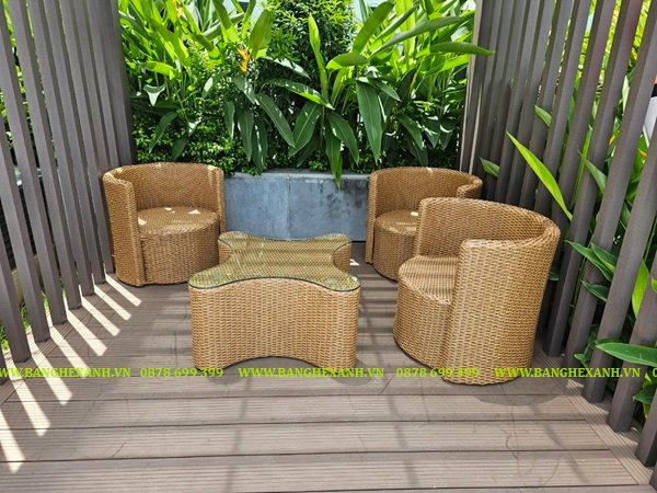 - Bàn ghế mây nhựa ngoài trời TL48 Kích thước, màu sắc có thể thay đổi theo nhu cầu của khách hàng.