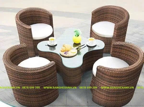 - Bàn Ghế Ăn Mây Nhựa Ngoài Trời