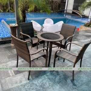 Bàn Ghế Mây Nhựa Ngoài Trời TL536