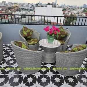 - Bàn Ghế Ăn Mây Nhựa Ngoài Trời