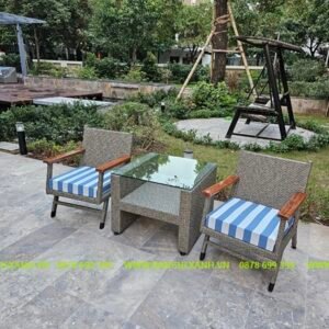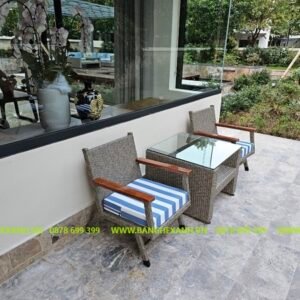 Khung bằng ống thép mạ kẽm hoặc sơn tĩnh điện, kết hợp đan sợi mây nhựa cao cấp 100% hạt nhựa nguyên sinh, có phụ gia chống tia UV, bảo vệ sức khỏe và môi trường. Chịu được thời tiết nắng mưa, thích hợp khi để ngoài trời, ban công, sân vườn và trong nhà.